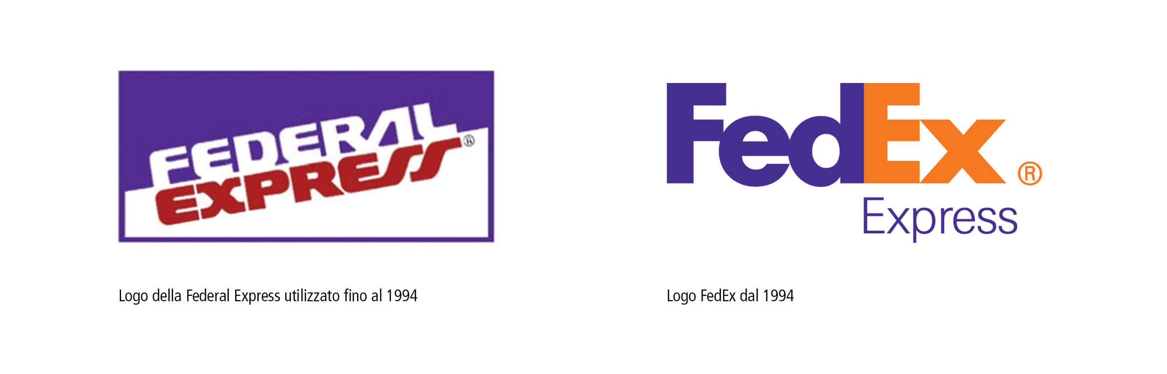 Da quel momento il logo divenne l’icona di questa società di trasporto internazionale specializzata in spedizioni espresse. Cambiò anche la denominazione che fino ad allora era stata Federal Express. La scelta del nuovo naming, frutto di un attento studio e di accuratissime indagini di mercato, fu di grande impatto innovativo nella comunicazione del brand.